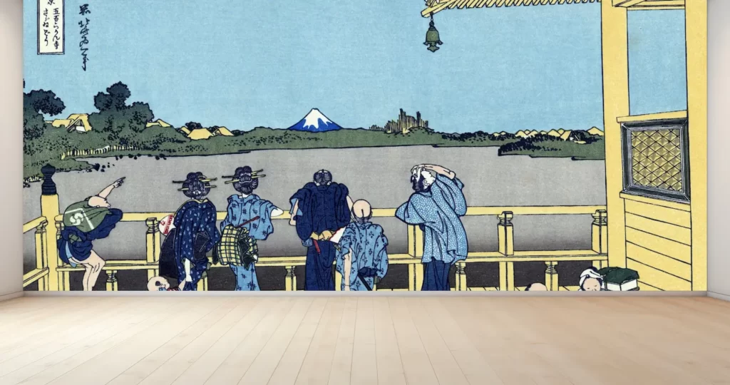 壁紙アート 葛飾北斎 冨嶽三十六景 五百らかん寺さゞゐどう クロス 日本画 インテリア 絵画 風景 デジタルプリント のり無し 塩化ビニル樹脂系壁紙