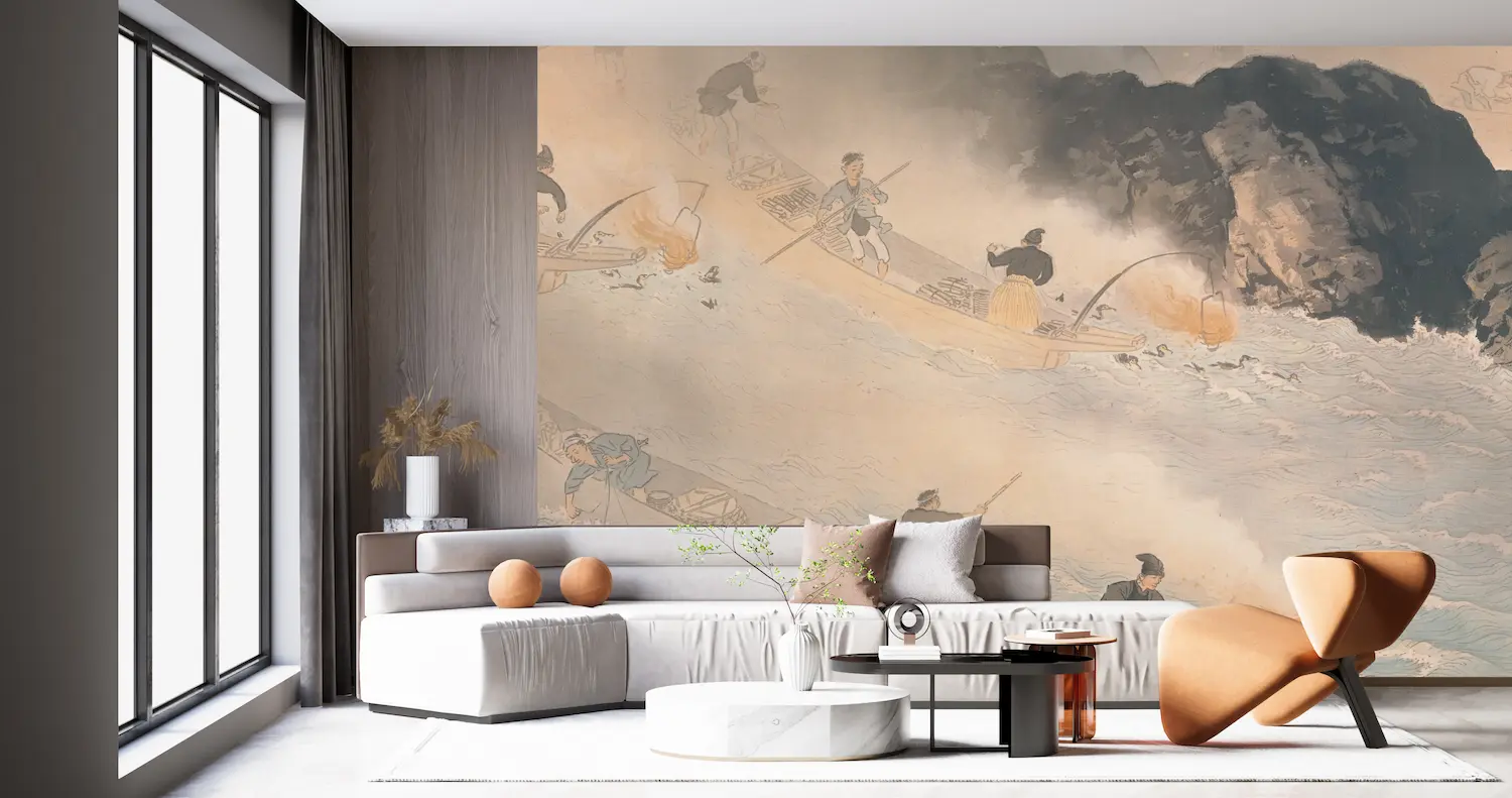 新商品 壁紙アート 川合玉堂 日本画家 インテリア 絵画 デジタルプリント のり無し 塩化ビニル樹脂系壁紙
