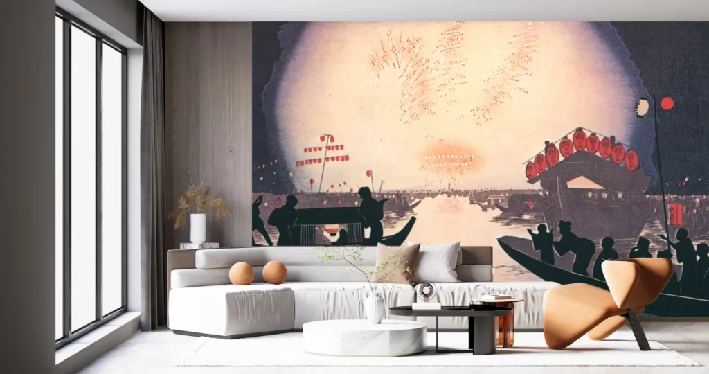 壁紙アート 小林清親 浮世絵師 インテリア 絵画 デジタルプリント のり無し 塩化ビニル樹脂系壁紙