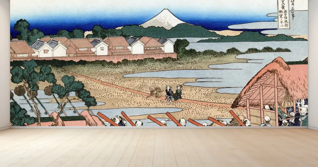 壁紙アート 葛飾北斎 冨嶽三十六景 従千住花街眺望ノ不二 クロス 日本画 インテリア 絵画 風景 デジタルプリント のり無し 塩化ビニル樹脂系壁紙