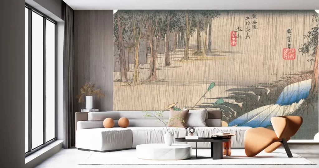 あなたのお部屋にこの壁紙アートを取り入れれば、日本の伝統と風景に触れ、心が癒されることでしょう。日本の美を感じながら、くつろぎの空間を演出しませんか?