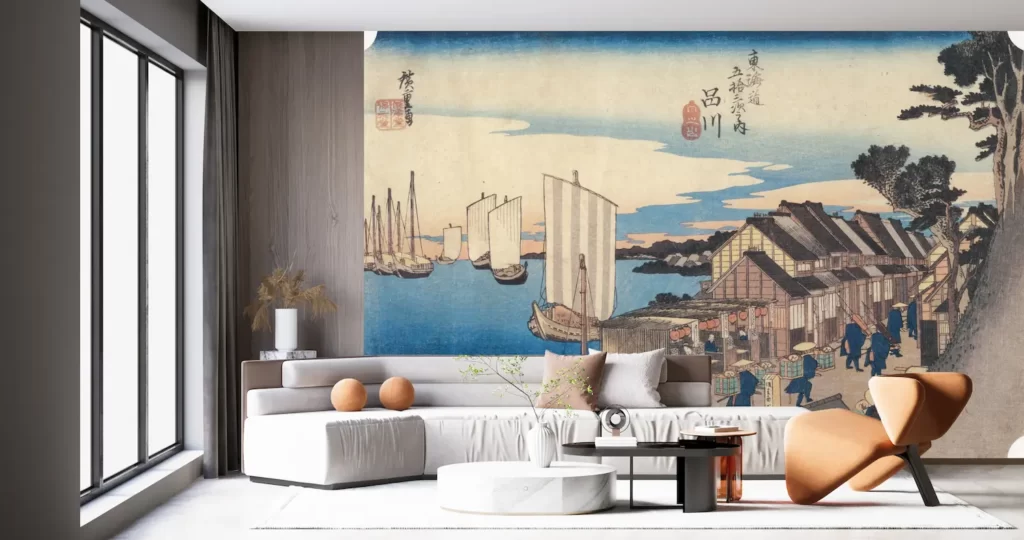 品川の風景を描いた歌川広重の壁紙アート。日本画のような美しい風景が、お部屋を大変身させます。時代を感じる雰囲気で、日本の伝統的な風景を楽しむことができます。