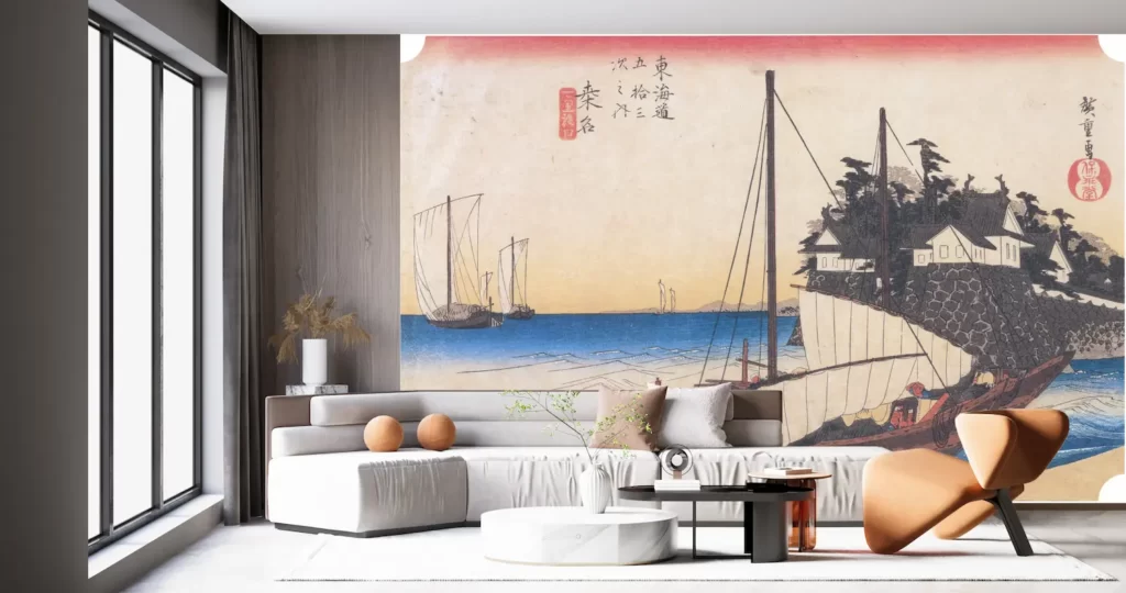 歌川広重の作品は、日本の伝統と現代のテイストを融合させたインテリアアートとして人気です。この壁紙がお部屋に溢れる日本の風景を思い起こさせ、落ち着きのある空間を演出します。是非、日本の歴史と風情を感じることのできる壁紙アートをお楽しみください。