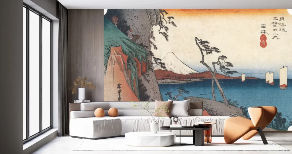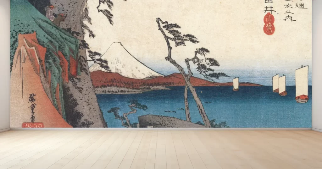 壁紙アートを通じて、歌川広重の美しさと日本の風景に触れることで、普段の生活に彩りを添えてくれるでしょう。ぜひお部屋の一角にこの壁紙アートを取り入れて、日本の伝統と現代のライフスタイルを融合させてみてください。