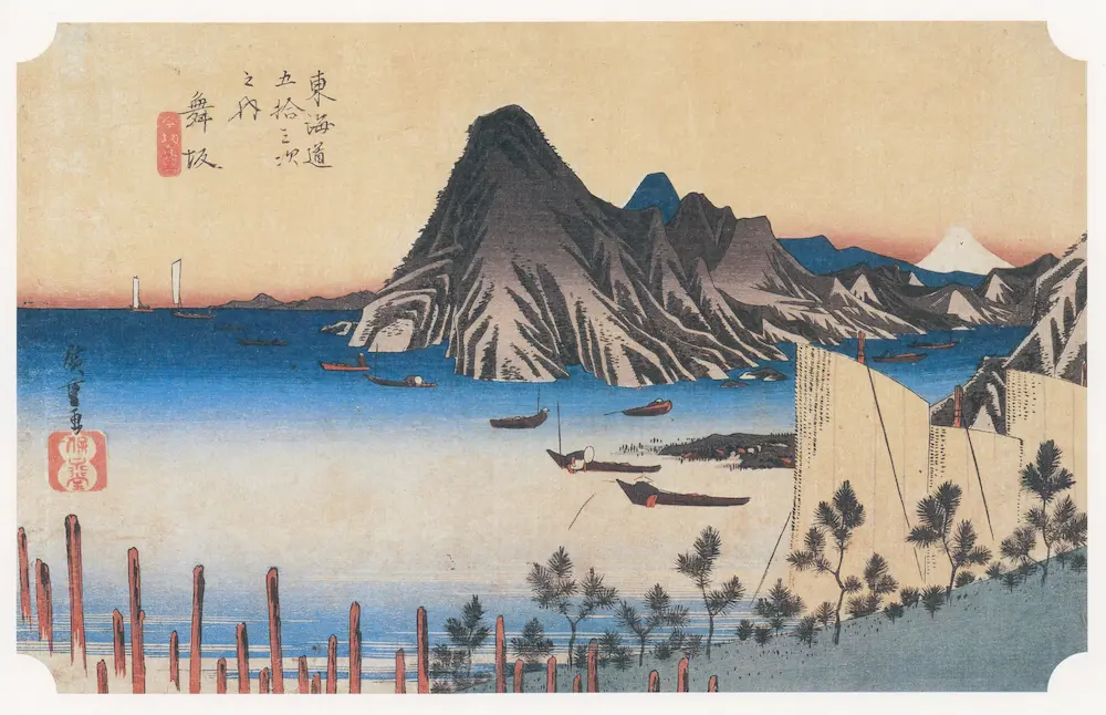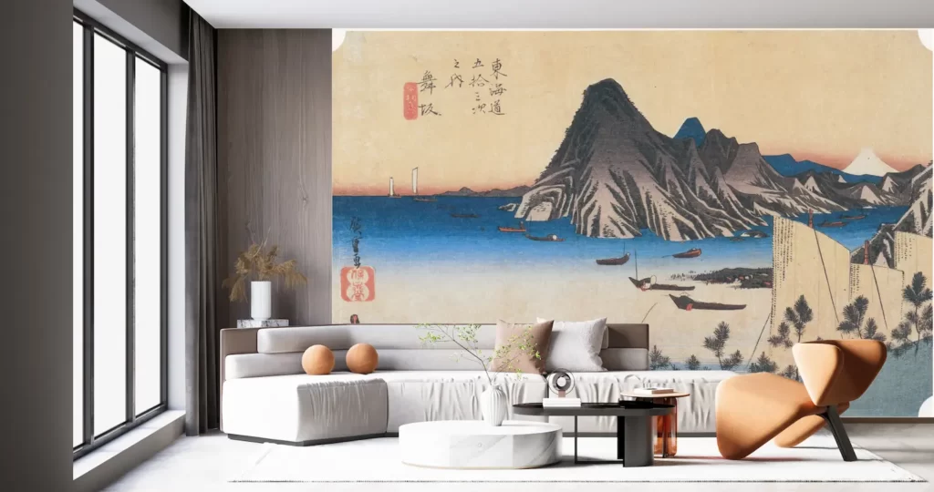 【新商品】 壁紙アート歌川広重 東海道五拾三次之内 舞坂 今切真景 クロス 日本画 インテリア 絵画 時代 風景 デジタルプリント のり無し 塩化ビニル樹脂系壁紙