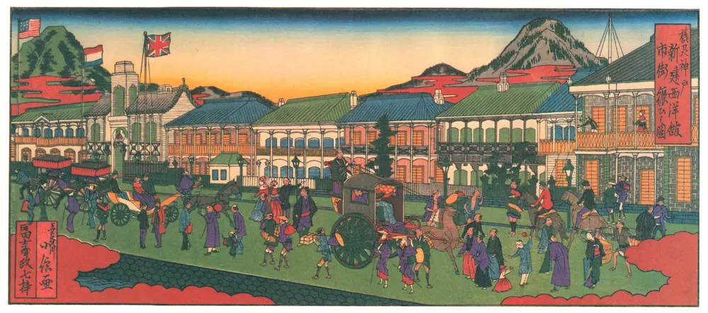 <商品名>二代目 長谷川貞信 攝州神戸新建西洋館 市街賑ひ之図(hase101)