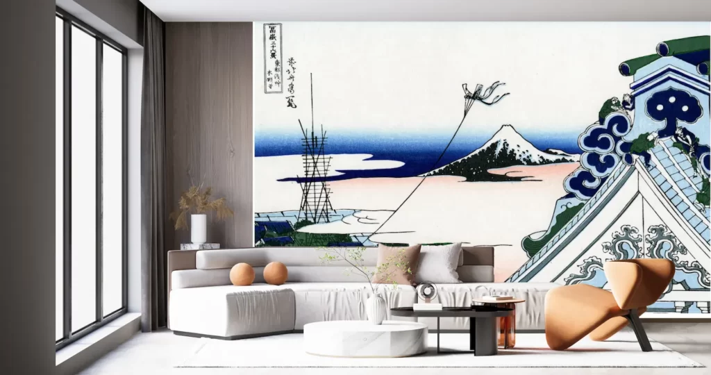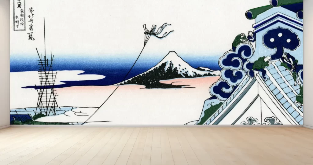 壁紙アートとして葛飾北斎の名作をお楽しみいただけます。東都浅草本願寺の美しい風景をあなたのお部屋に取り入れましょう。