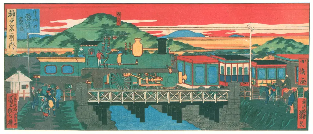 <商品名>二代目 長谷川貞信 神戸名所之内 生田川鉄道蒸気(hase106)