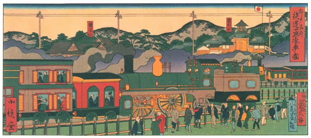 <商品名>二代目 長谷川貞信 神戸名物鉄道蒸気車之図(hase108)