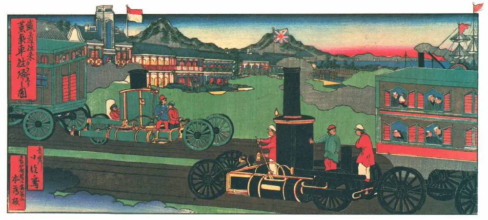 <商品名>二代目 長谷川貞信 鉄道往来蒸気車往帰之図(hase113)