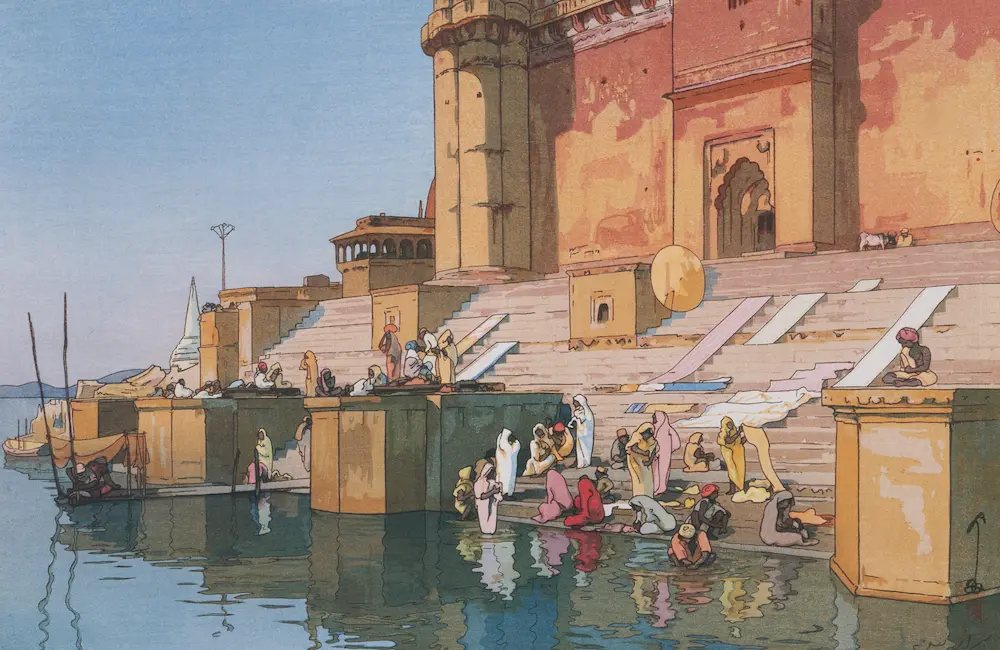 【新商品】壁紙アート 吉田博 ベナレスのガット クロス 日本画 洋画家 版画家 インテリア 絵画 風景 時代 デジタルプリント のり無し 塩化ビニル樹脂系壁紙