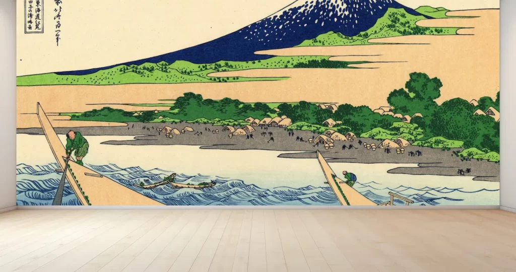 葛飾北斎の名作「富嶽三十六景 東海道江尻田子の浦略図」をモチーフにした壁紙アートが登場しました!独自のデジタルプリント技術により、北斎の絵画の美しさを忠実に再現しました。