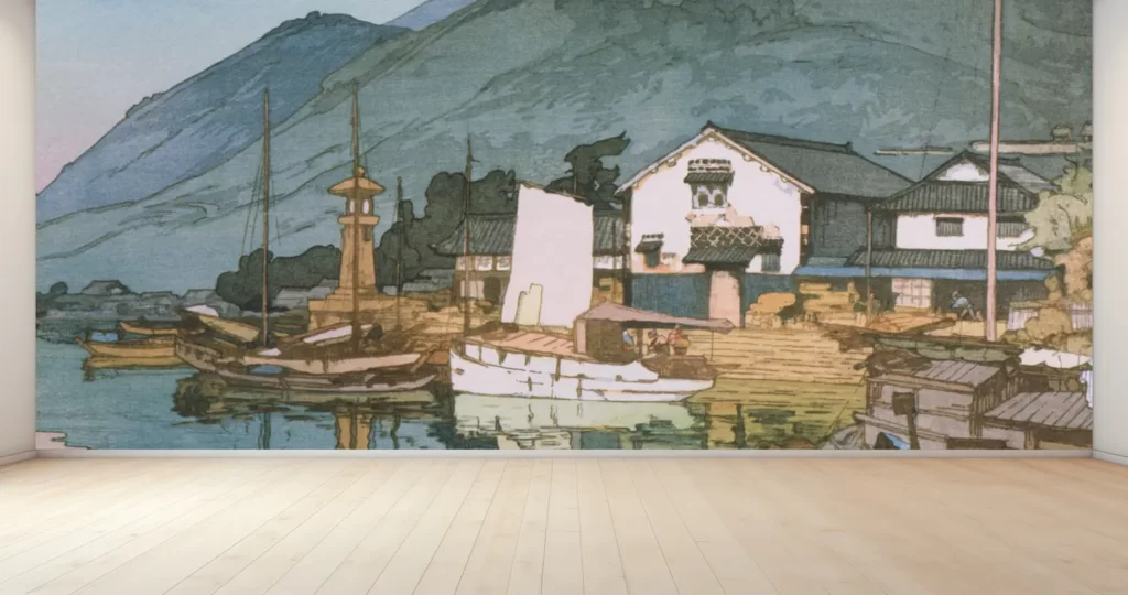 【新商品】壁紙アート 吉田博 瀬戸内海集第二 鞆之港 クロス 日本画 洋画家 インテリア 絵画 風景 時代 デジタルプリント のり無し 塩化ビニル樹脂系壁紙