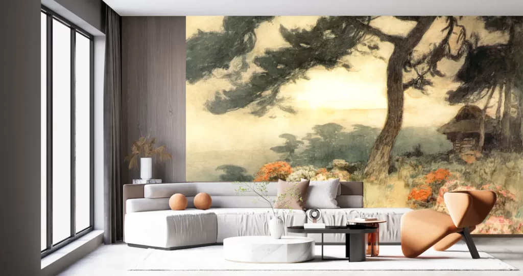 新商品の壁紙アート、吉田博の松柄クロスが登場しました。日本画・洋画家であり版画家でもある吉田博氏の作品が、壁紙アートとして再現されました。風景や時代を感じさせる美しいデザインは、インテリアに華やかさと深みを与えること間違いありません。また、デジタルプリントによるリアルな表現が、壁紙アートの質感を一層引き立てます。