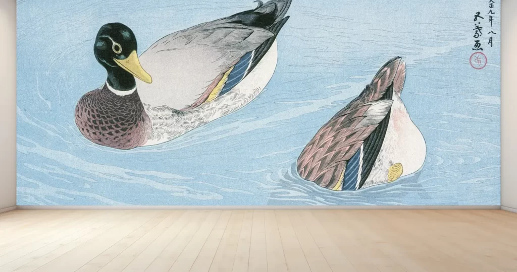 新商品 壁紙アート 橋口五葉 鴨 洋画家 版画家 インテリア 絵画 風景 時代 デジタルプリント のり無し 塩化ビニル樹脂系壁紙