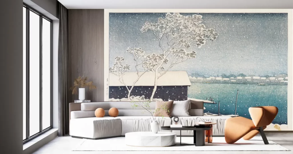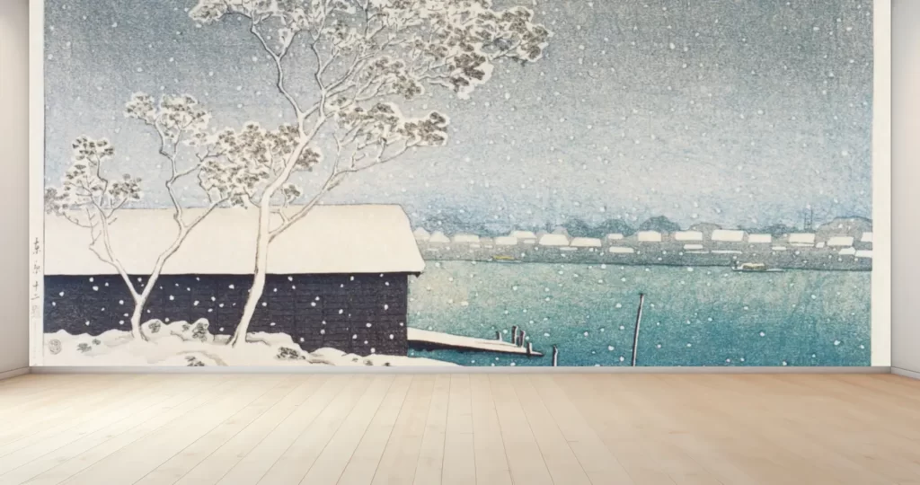 このアート壁紙は、コンセプトやストーリーが込められた一枚。川瀬巴水が描いた東京の風景を通じて、現代の暮らしにもっと美しさと平穏を取り入れて欲しいという想いが込められています。ぜひ、日々の生活にアートを取り入れて、心地よい空間を演出してみてください。