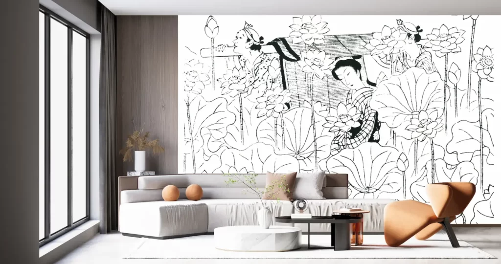 新商品、壁紙アートとして最適な小村雪岱氏のおせんをデジタルプリント。邦枝完二氏の作品からインスピレーションを受け、日本画家の技術と版画家のデザインが融合した一枚。風景をテーマにしたアート作品は、どんな部屋にも調和し、空間を豊かに演出します。塩化ビニル樹脂系壁紙は施工が簡単で、気軽に模様替えが楽しめます。このアート壁紙で日本の美をあなたのお部屋へ。美しさと気品を兼ね備える、最高のインテリアアートです。