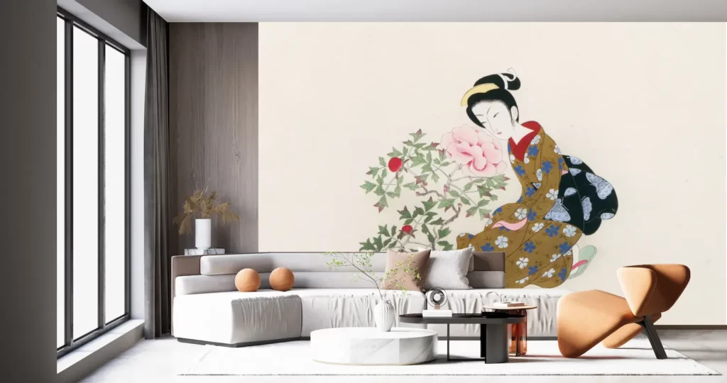 小村雪岱 深見草 新商品 壁紙アート 日本画家 版画家 インテリア 絵画 風景 時代 デジタルプリント のり無し 塩化ビニル樹脂系壁紙