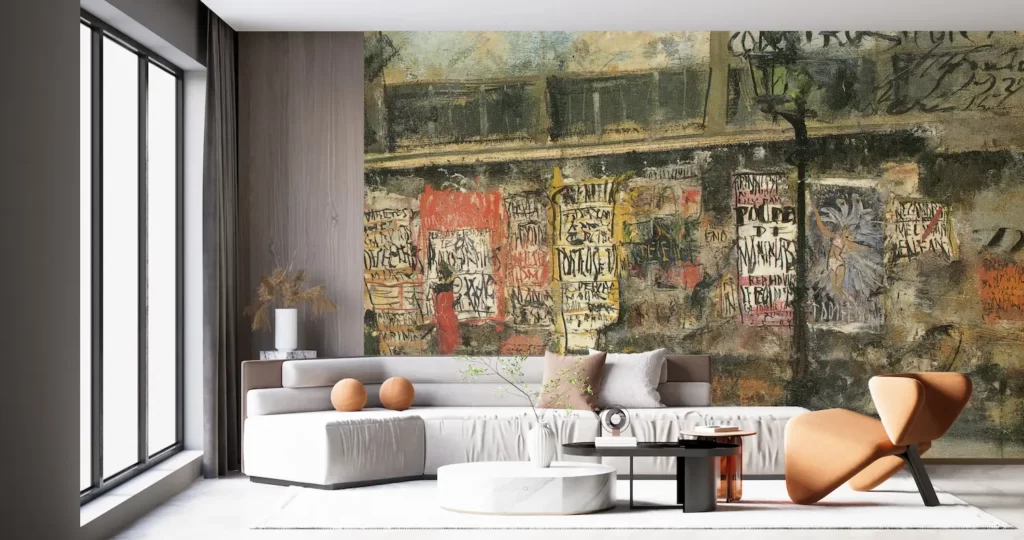 壁紙アート佐伯祐三のデジタルプリント壁紙が新登場!洋画家が描くガス灯と広告の風景が、あなたのお部屋を一気に華やかに彩ります。時代を感じさせるデザインで、インテリアのポイントになること間違いなし!さらに、塩化ビニル樹脂系壁紙なので、施工も簡単です。佐伯祐三の作品を手軽にお楽しみいただける贅沢な一枚です。お部屋に彩りを添える新しい壁紙アートをお届けします。