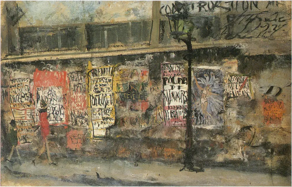 新商品 壁紙アート佐伯祐三 ガス灯と広告 洋画家 インテリア 絵画 風景 時代 デジタルプリント のり無し 塩化ビニル樹脂系壁紙