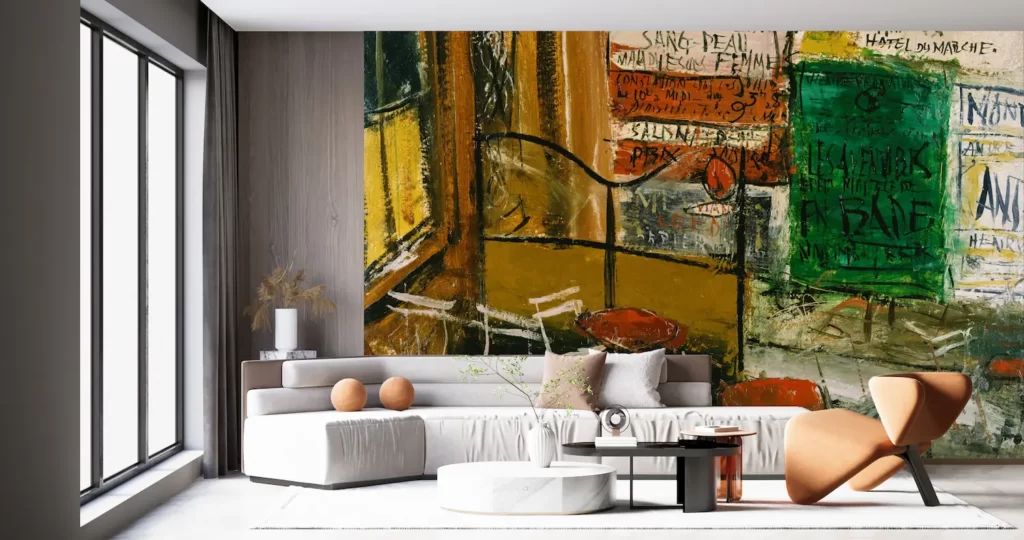この壁紙アートは、部屋全体を彩り豊かに演出し、インテリアのポイントとして存在感を放ちます。佐伯祐三氏の作品は、どんな空間にも新たな魅力をプラスしてくれること間違いありません。壁一面を飾ることで、まるでその場にいるかのようなリアリティを感じられることでしょう。