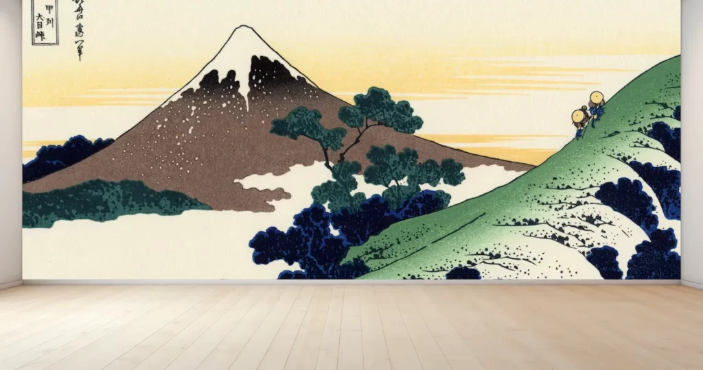 壁紙アート 葛飾北斎 冨嶽三十六景 甲州犬目峠 クロス 日本画 インテリア 絵画 時代 風景 デジタルプリント のり無し 塩化ビニル樹脂系壁紙
