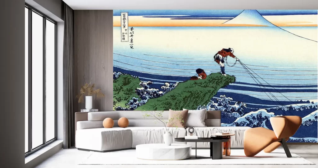 このクロスが描く風景は、美しさだけでなく、北斎の情熱や感性も感じられる作品。その気高さと秩序からインスピレーションを得て、日々の生活における調和と平穏を感じることができるでしょう。部屋に北斎の時代を感じさせる、特別な一枚です。
