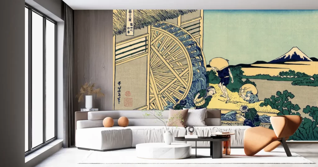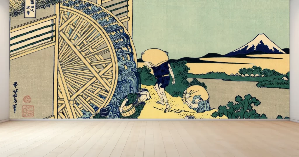 新しく登場した壁紙アート、葛飾北斎の「冨嶽三十六景 穏田の水車」がついにリリースされました!日本画の美しさを感じさせるこの作品は、インテリアに芸術的な雰囲気を添えること間違いなしです。時代と風景を描いたこのデジタルプリント壁紙は、クロスとしても使用できます。さらに、簡単に施工できるので、初心者でも安心です。