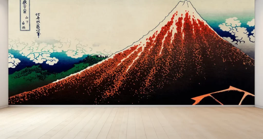 壁紙アート 葛飾北斎 冨嶽三十六景 山下白雨 クロス 日本画 デザイン インテリア 絵画 時代 風景 デジタルプリント のり無し 塩化ビニル樹脂系壁紙