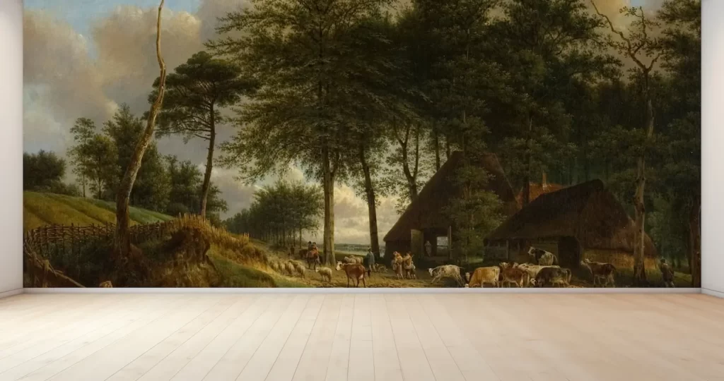 ジョセフス・アウグストゥス・クニップの風景画や静物画を素敵なインテリアとしてお楽しみください。デジタルプリントされたこの壁紙は、簡単に壁に貼ることができ、お部屋を美しく彩ります。塩化ビニル樹脂系の素材は耐久性に優れ、汚れても簡単に拭き取れるのでお手入れも簡単です。