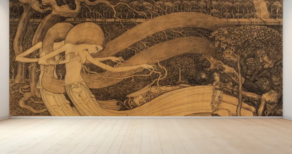 ヤン・トーロップの作品をご自宅の壁に。美しい風景や抽象的な絵画をインテリアに取り入れることで、空間がぐっと豊かになります。デジタルプリントで再現された絵画は、塩化ビニル樹脂系壁紙にプリントされています。美しく鮮明な色彩と質感が、あなたの空間を一層引き立てます。