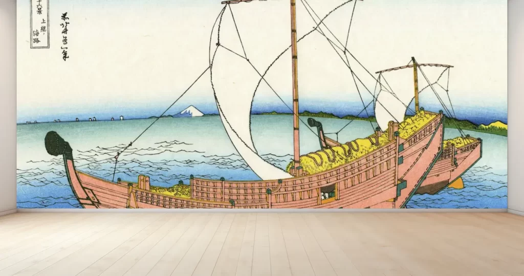 壁紙アート 葛飾北斎 冨嶽三十六景 上総ノ海路 クロス 日本画 デザイン インテリア 絵画 時代 風景 デジタルプリント のり無し 塩化ビニル樹脂系壁紙